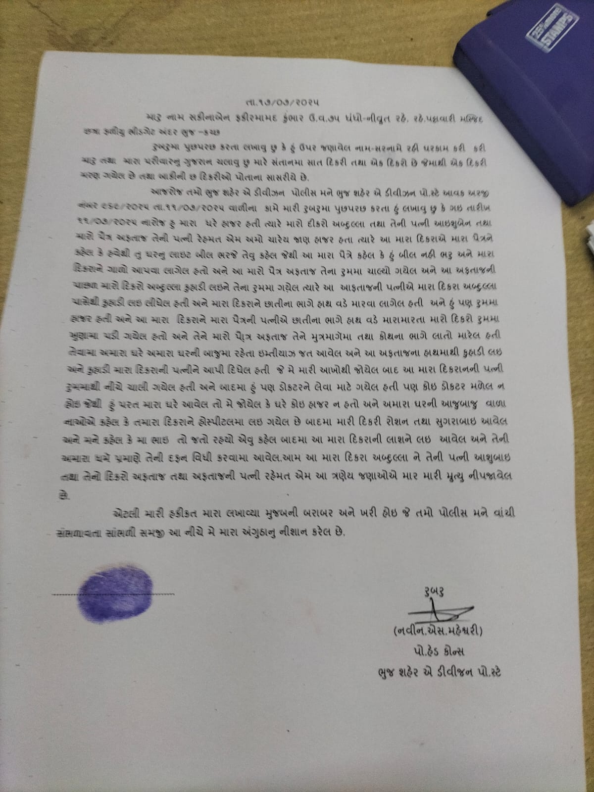 એક માતાએ પોતાની પુત્રવધુ પૌત્ર અને પૌત્ર વધુ સામે દીકરાની હત્યા કર્યાની ફરિયાદ નોંધાવતા ચકચાર: